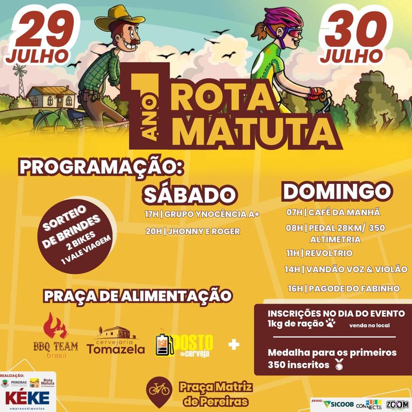A Prefeitura Municipal de Pereiras e a Kéke Empreendimentos têm o prazer de apresentar o incrível evento de aniversário de 01 ano da Rota Matuta de Cicloturismo!