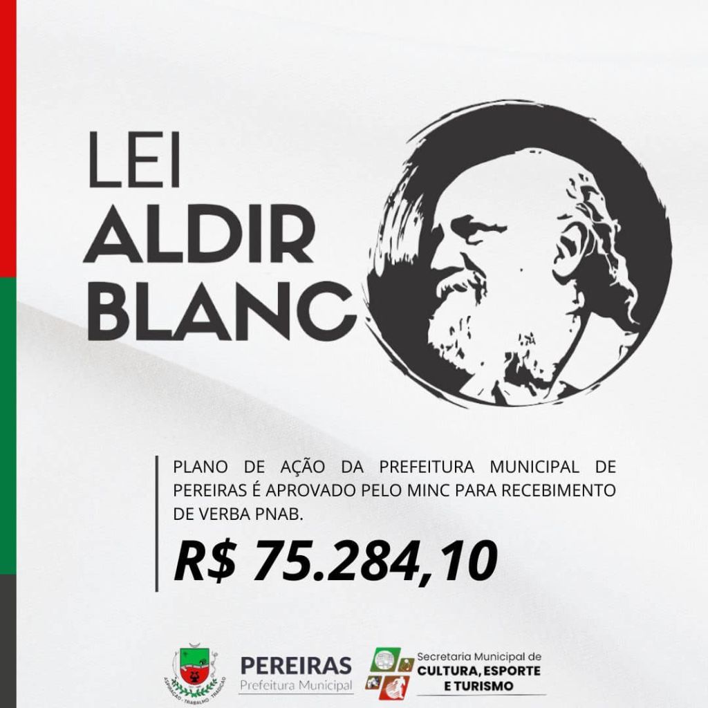 A Prefeitura de Pereiras , atavés da Secretaria de Cultura,Esporte e Turismo, submeteu ao Ministerio da Cultura (Minc) no dia 24/11, o Plano de Ação para aplicação da Politica Nacional Aldir Blanc de Fomento Cultural (PNAB) – Lei nº14.399 de 08/07/2022 e Decreto Federal nº 11.740 de 18/10/2023.