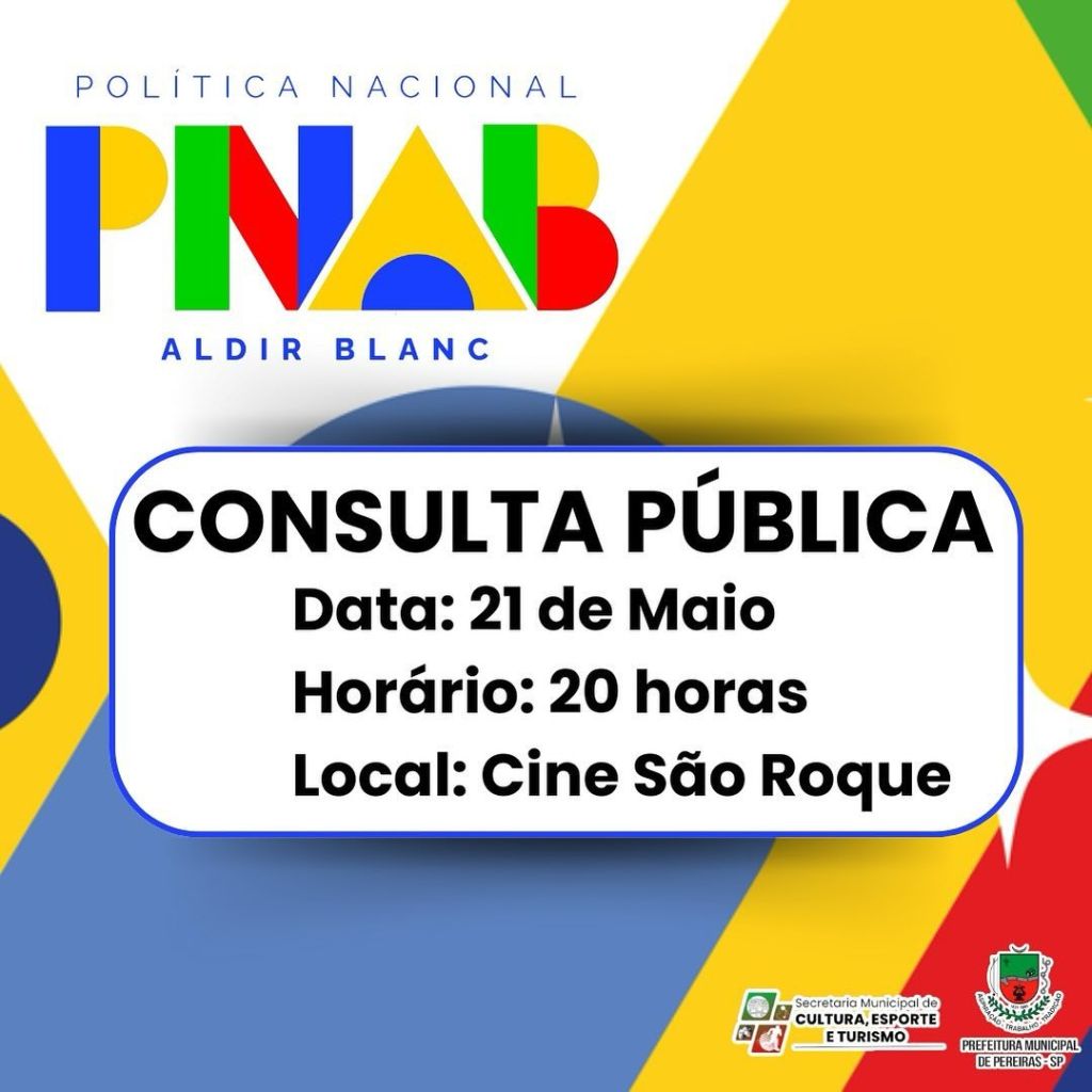 A Prefeitura de Pereiras através da Secretaria de Cultura realiza na terça feira dia 21/05 as 20h Consulta Publica Presencial.