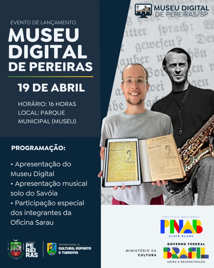 A Prefeitura de Pereiras convida toda a população para um momento marcante na história cultural do município: o lançamento oficial do Museu Digital, um espaço inovador que une tecnologia e preservação da memória local.