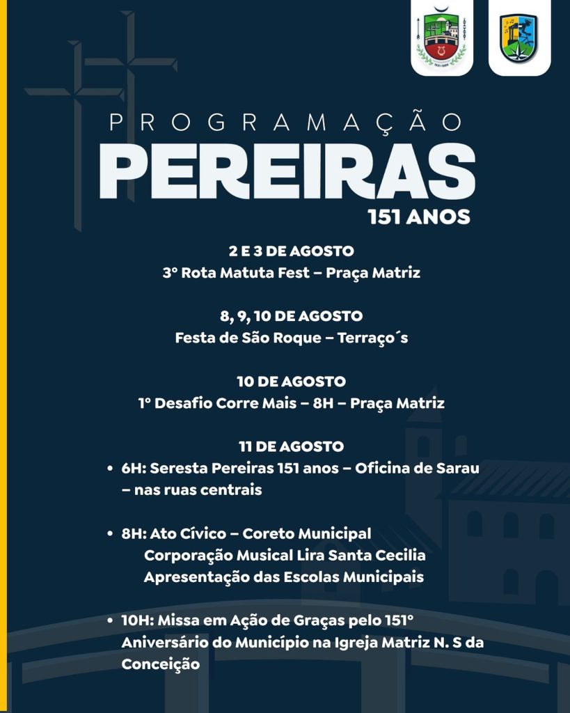 Agosto chegou e com ele o aniversário de Pereiras. Confira a programação especial e venha celebrar com a gente!