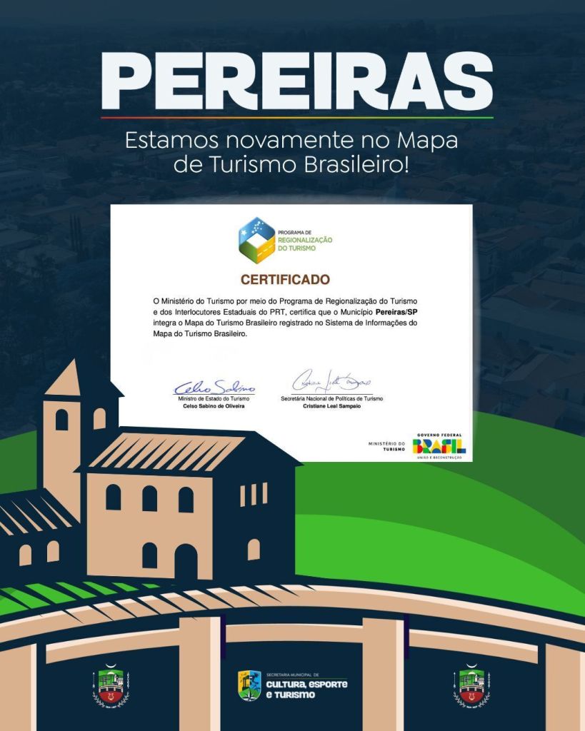 Pereiras novamente integra o Mapa Nacional do Turismo Brasileiro!